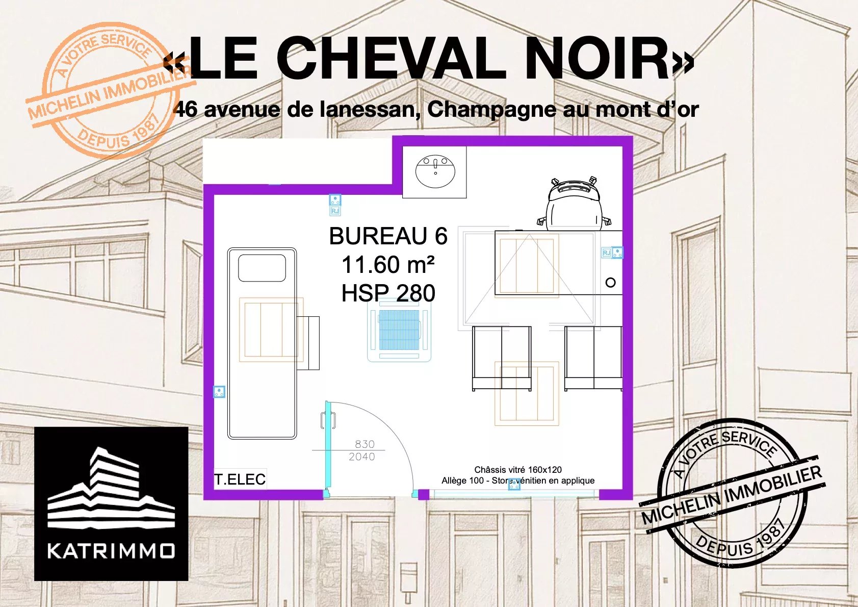 Au coeur de champagne au mont d'or, au dernier étage de l'immeuble emblématique "Le cheval noir" (46 avenue de lanessan), dans un ensemble professionnels de 14 bureaux réservés aux professionnels de santé (médical, paramédical ...)