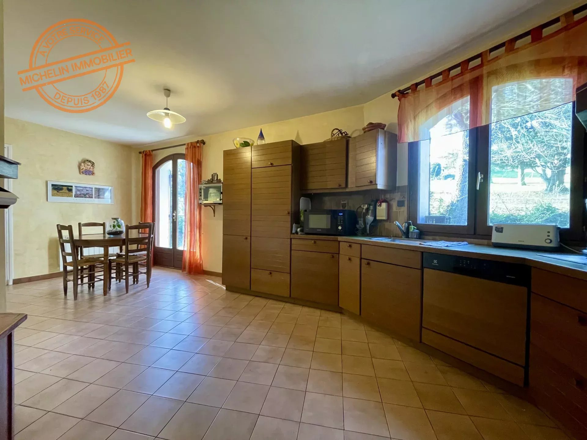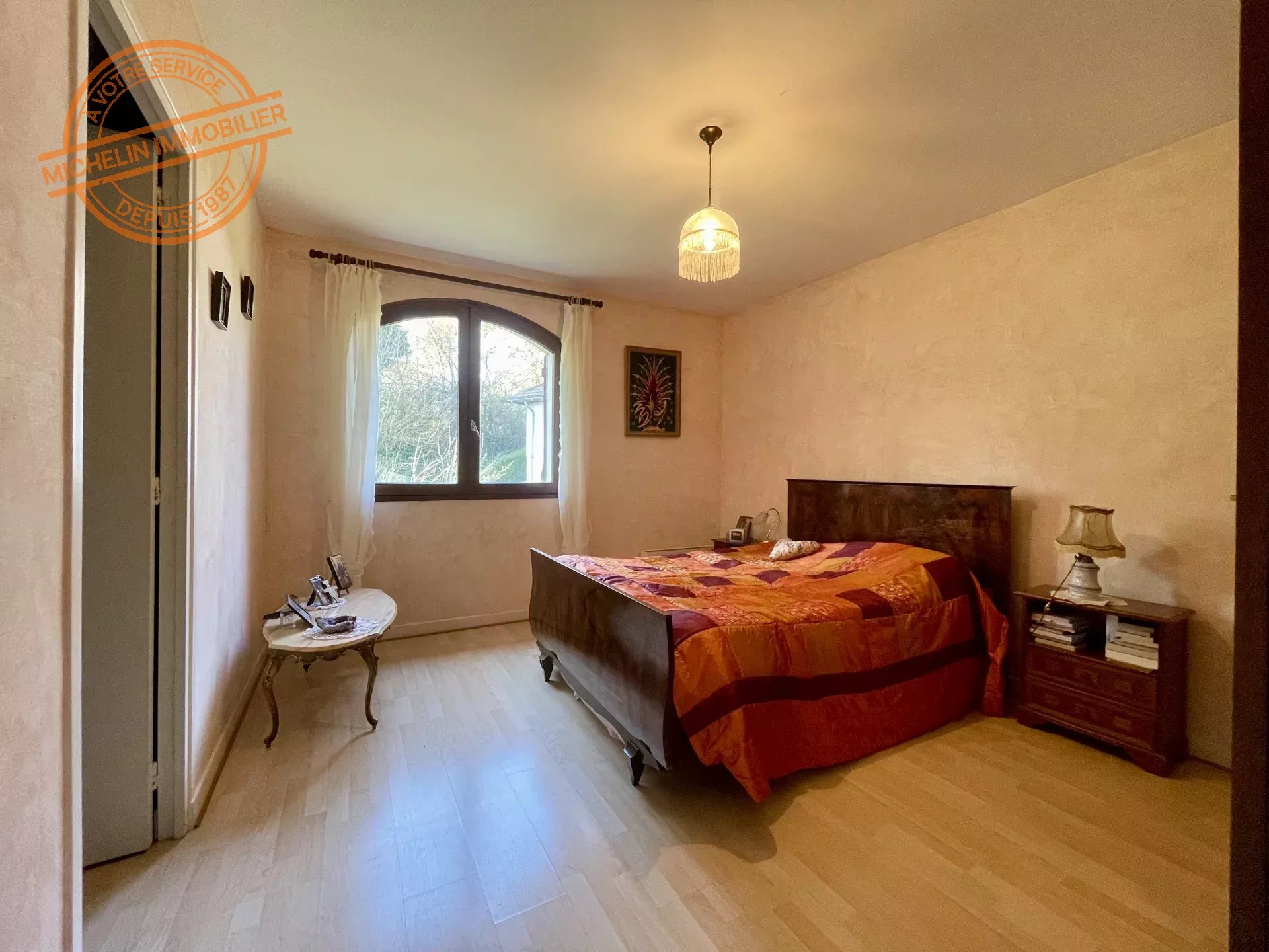 Sur un terrain paysagé de 1160m2, cette maison individuelle est sur un sous-sol quasi enterré. Les vues sont agréables, les volumes sont grands, simples et efficaces, à savoir une grande pièce de vie et une grande cuisine équipée qui s'ouvrent sur la terrasse SUD, trois grandes chambres dont une suite parentale avec dressing et grande salle de bain, une salle d'eau et un WC indépendant.